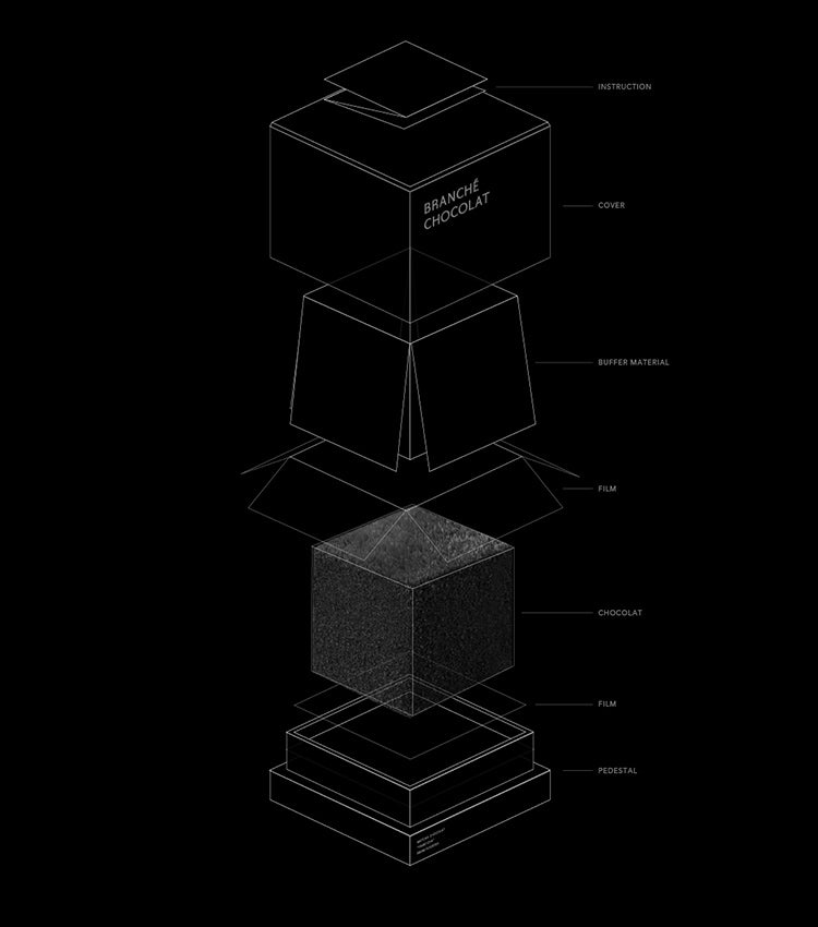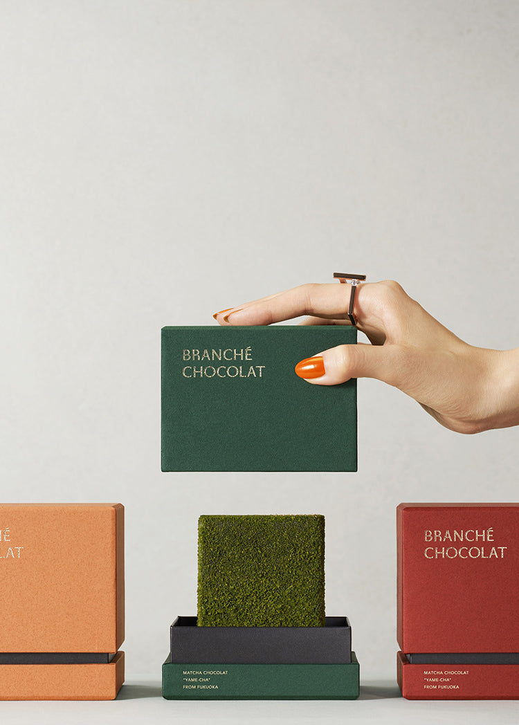 BRANCHÉ=繋ぐ・差し込む。BRANCHÉ CHOCOLATのカレ・オ・ショコラは、感性を一歩先まで繋ぐ、至福のスイーツです。日本各地の本物の素材、一流の料理人の技、美しいデザイン、美食の喜び、これらすべてをキューブに詰め込み、今の食をアップデートする逸品。至高のスイーツを作るために新しい風味・食感・素材・デザインにこだわり抜いています。”食のリテラシーを磨く”をコンセプトに掲げる薬師神 陸が、真摯に作られたローカル食材を探し、地域に根差した一流の素材をピックアップ。既知のものにとらわれず、存在感のある佇まいやシェアをする喜び、口に運ぶまでの感動、食べた時の驚きを大切に仕上げました。BRANCHÉ CHOCOLATは、現代的かつ、本物だけを使ったスイーツをお届けします。