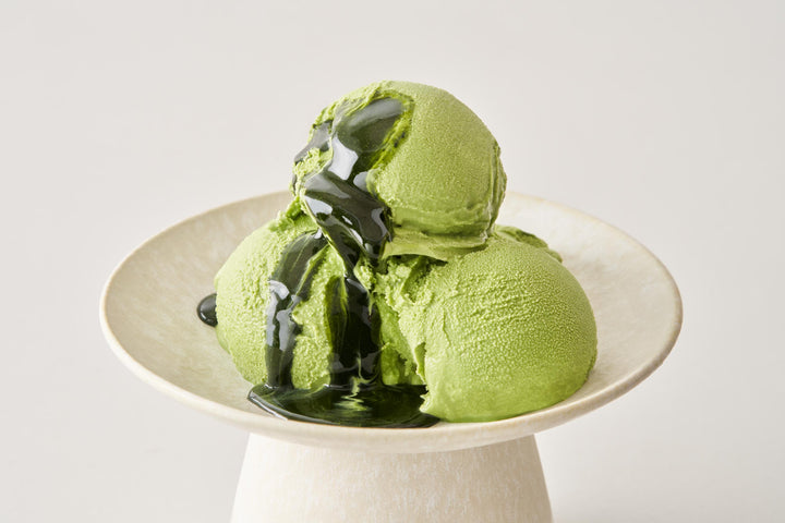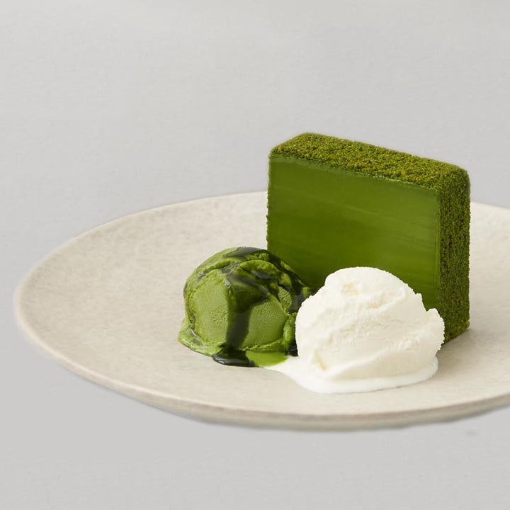 RICH MATCHAには上質な八女茶を使い、抹茶の旨味をピュアに感じるソースを乗せました。濃厚なミルクと抹茶の苦味が引き立てあう、大人のデザートです。