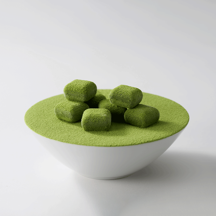 最高級の八女抹茶が口いっぱいに広がる豊かな香り。 鮮やかな佇まいとベルベットのようになめらかな口溶け、八女茶の旨み。 深い味わいながら軽やかなのは、生クリームと煮詰めたミルクの絶妙な配合バランスが理由。 ホワイトチョコレートの甘みに輪郭を与える八女茶の産地でもある福岡の梅酒が隠し味。少しの温度変化で、味わいが表情を変えるのも楽しみのひとつ。 ひんやりとした一口目には八女茶が繊細に香り、徐々に温度が上がるにつれコクのある抹茶の苦味が増していきます。